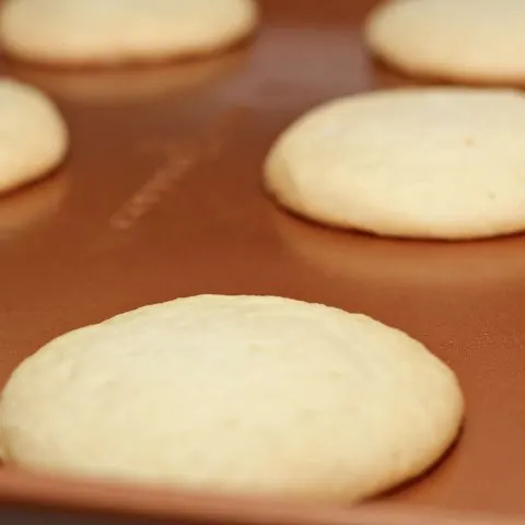 Start by rolling your sugar cookie dough into 1 – 2 inch balls and placing them on a cookie sheet. Bake at 350 degrees for about 11-13 minutes. Until edges are golden.