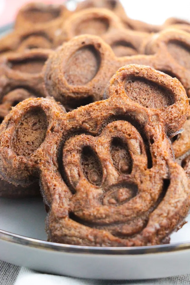 You can eat Chocolate Mickey Waffles for breakfast, brunch, or even dessert! You can serve your waffles with maple syrup and strawberries for breakfast or add ice cream on the side and enjoy this recipe as a delicious sweet treat.