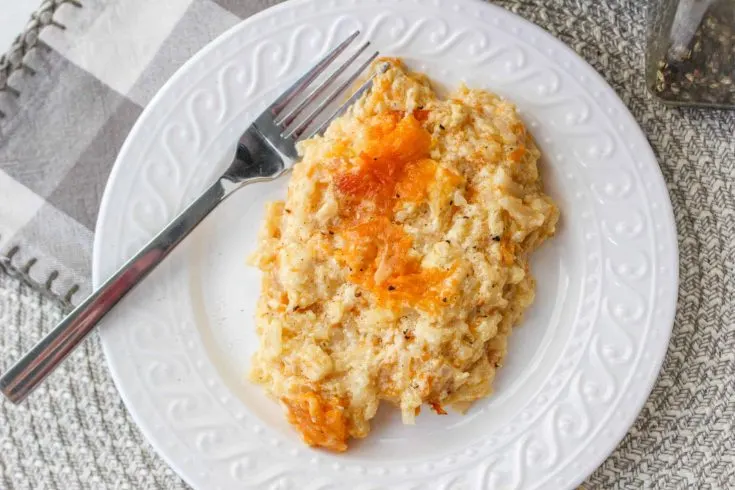 This cheesy hash brown casserole dish is also great for dinner! It is a great side dish for holiday dinners or family gatherings.