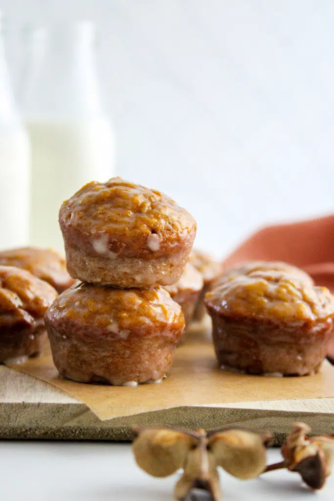 Glaze – This simple glaze is made with powdered sugar, milk, and pumpkin pie spice. Consider other toppings such as a light dusting of powdered sugar, pumpkin spice cream cheese frosting, a drizzle of melted chocolate, caramel sauce, a dollop of whipped cream, or dip your freshly baked donut holes in cinnamon sugar (½ cup of granulated sugar with 1 teaspoon of cinnamon).