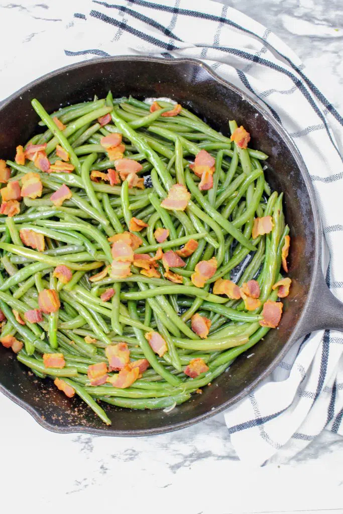 This classic bacon green beans recipe is simple and quick. Toss the fresh green beans with bacon, salt, and black pepper to create an amazing side dish that goes well with everything.